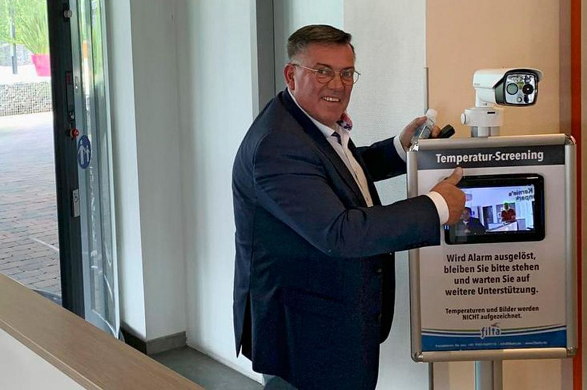 Dies betrifft auch das Hotel auf dem Gelände, an dessem Eingang Obbink zusammen mit FiltaFry ein Fiebererkennungssystem mit Wärmebildkamera installiert hat. Der sogenannte "ThermoGuard" erkennt in Echtzeit Personen mit erhöhter Körpertemperatur und alarmiert visuell und akustisch, wenn eine bestimmte, vorher festgelegte Temperatur überschritten wird. In diesem Fall steht ein Mitarbeiter des Hotels als Ansprechperson bereit, der weitere Maßnahmen veranlasst.