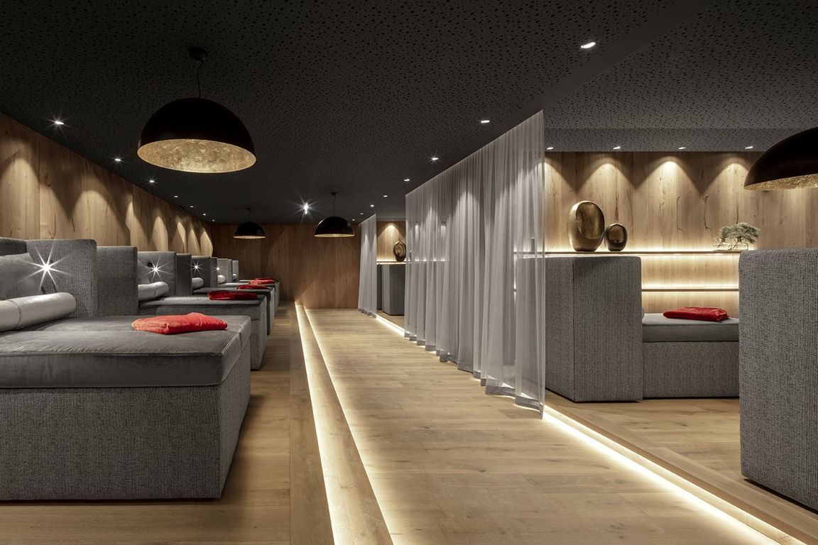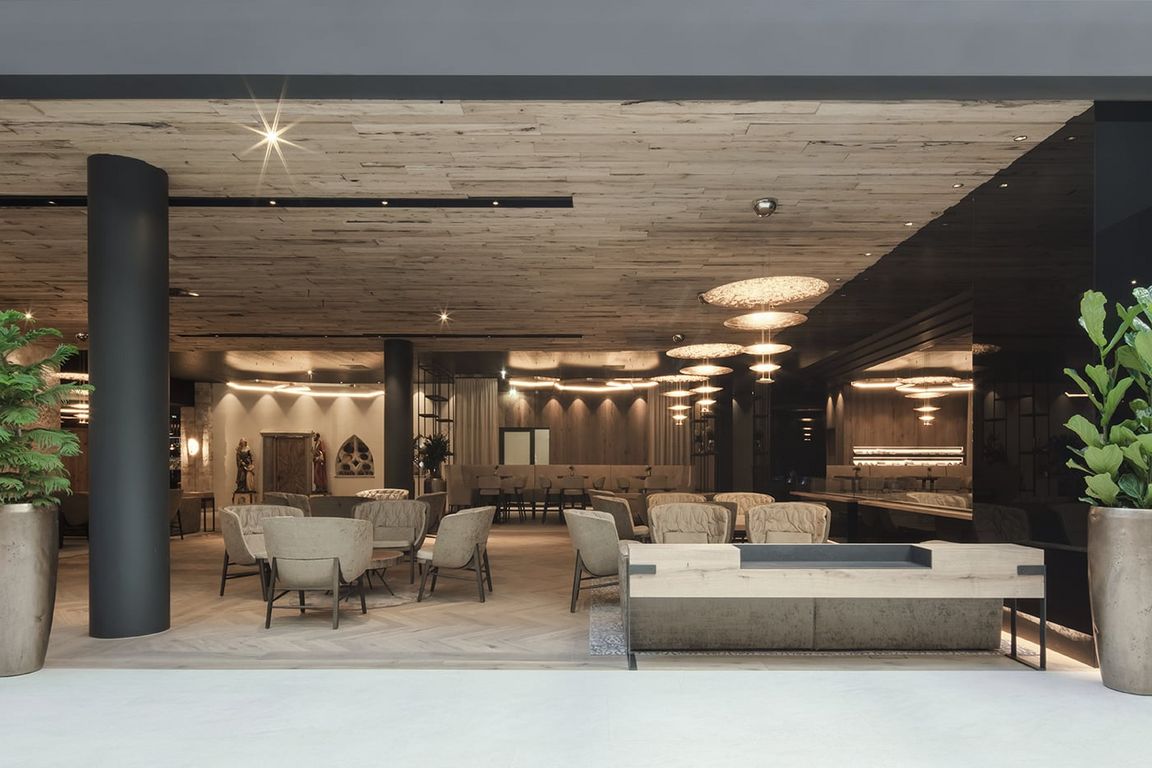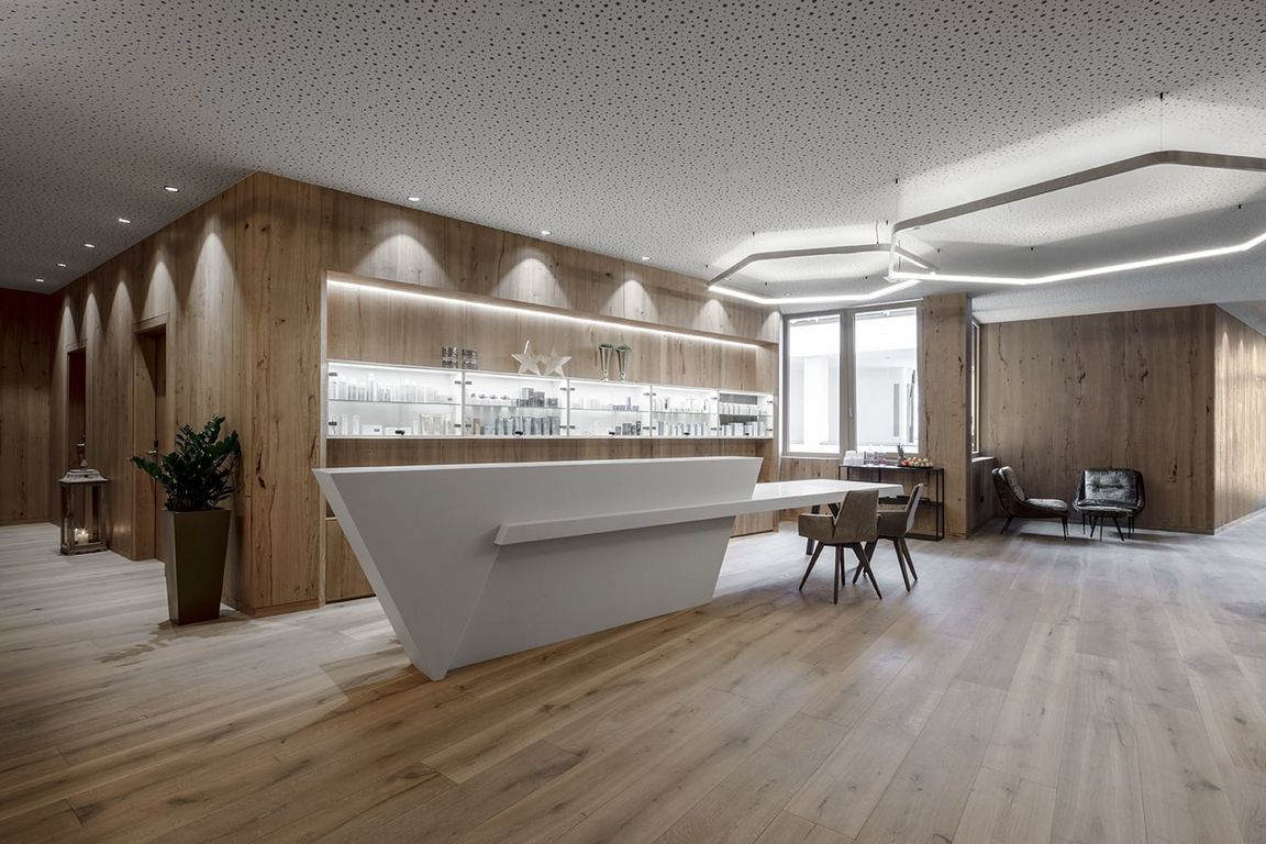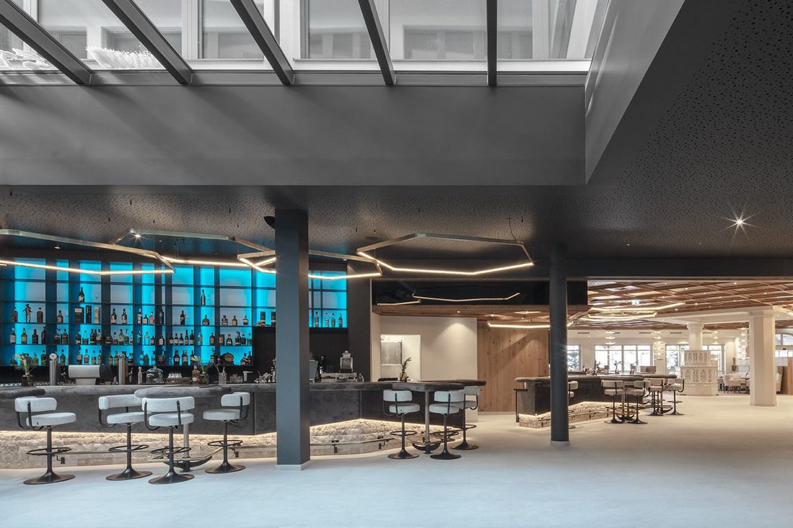 DAS EDELWEISS Salzburg Mountain Resort liegt in einem Seitental von St. Johann im Pongau und direkt an der Panoramabahn-Talstation in Großarl. Für den insgesamt achtstöckigen Neubau wurden 150.000 Kubikmeter Felsmaterial vom anliegenden Bergmassiv hinter dem Hotel abgetragen. Der terrassenförmige Zubau fügt sich in die Hügellandschaft und lässt DAS EDELWEISS scheinbar mit der Umgebung verschmelzen. Eine großzügige, weitläufige Raumaufteilung und große Fensterlandschaften sorgen neben natürlichen Materialien wie Stein, Glas und Holz für eine gemütliche, warme Atmosphäre in modernem Stil. Das Gesamtkonzept entstand in Zusammenarbeit mit den Innenarchitekten von köck&bachler aus Fieberbrunn in Österreich. Ferner legten die Bauherren großen Wert darauf, mit lokalen Handwerken zu arbeiten. Viele der 113 Zimmer und Suiten in modernem Alpinchic verfügen über eine tolle Aussicht auf die Großarler Bergwelt und sind mit Boxspringbetten in Übergröße ausgestattet.