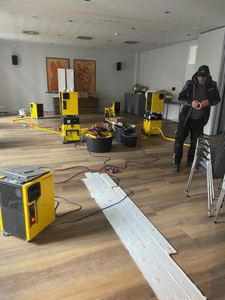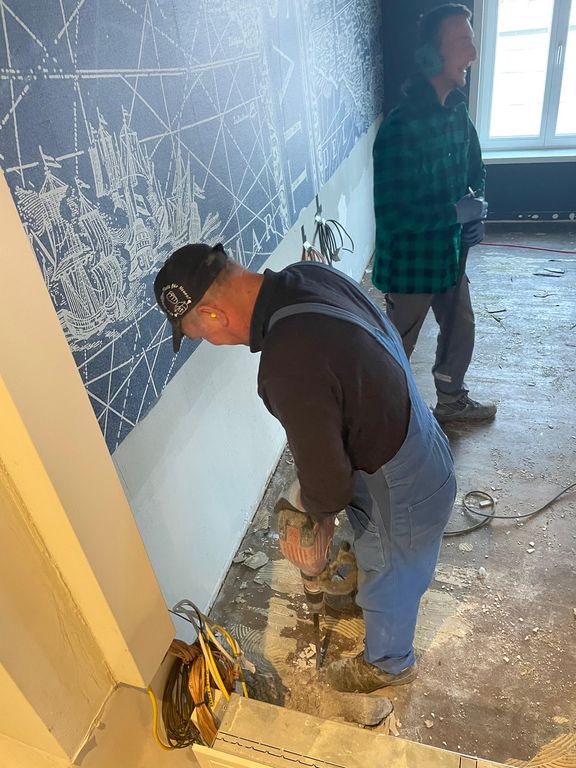 Die Gäste des Hotel Hafen Flensburg können sich auf ein runderneuertes Erdgeschoss freuen. Nach der aufwendigen Trocknung mit 100 Kernbohrungen zum Entfeuchten und bis zu 40 Trockengeräten im Einsatz wurde der Putz abgeschlagen und erneuert. Die fest verbauten Möbel, die man so schnell nicht in Sicherheit bringen konnte, haben Tischler wieder restauriert oder neu gebaut, Fußböden und Leisten sind erneuert, alles wurde frisch gestrichen.