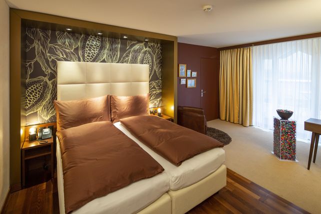 Entstanden sind die Themenzimmer in Zusammenarbeit mit dem nur 15 km entfernt liegenden Maestrani’s Chocolarium. Ein Eintritt in die Schokoladenfabrik in Flawil ist bei jeder Übernachtung inbegriffen. Bei Maestrani ist die Freude über das neue Angebot ebenfalls groß. CEO Markus Vettiger betont die Wichtigkeit der Zusammenarbeit im Tourismus: «Nur mit gewinnbringenden Kooperationen gelingt es uns, im umkämpften Tourismusmarkt noch mehr Gäste für die Angebote in der Ostschweiz zu begeistern. Wir sind stolz, dass unser Schoggi-Erlebnis mit den beiden Hotelzimmern ergänzt wird.» Für einen garantiert glücklichen Aufenthalt steht für die Gäste selbstverständlich auch jede Menge Schokolade zum Genießen bereit.
