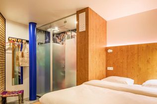 Das Bunk Hotel in Amsterdam Noord hat sich in der ehemaligen Kirche St. Rita niedergelassen, die 1921 erbaut wurde. Und auch heute erinnern die Orgelpfeifen und die Buntglasfenster an die einstige Vergangenheit des ehemaligen Gotteshauses. Doch wo früher die Menschen auf harten Bänken gebeten haben, erwarten die Gäste nun 106 Zimmer und 50 private Schlafkabinen.
