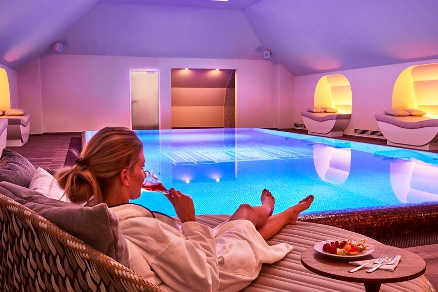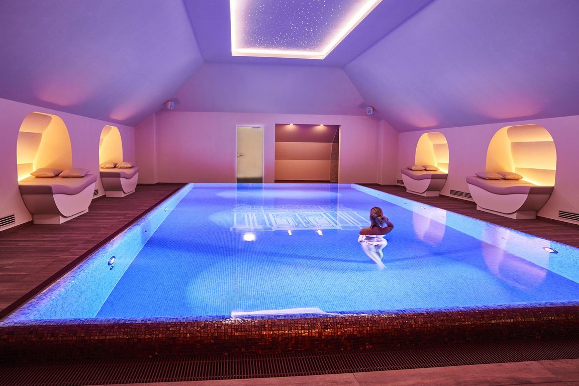 Das moderne Ambiente des Pool-Bereichs wird durch einen blauen Fliesenspiegel mit der Intarsie des Taschenbergpalais Logos unterstrichen. Der Wellnessbereich steht allen Hotelgästen täglich von 7:00 Uhr bis 22:00 Uhr kostenfrei zur Verfügung. Dresdner oder externe Gäste können in Verbindung mit Buchung einer Anwendung am selben Tag den Wellnessbereich gegen einen Aufpreis von 25 Euro pro Person nutzen. Für externe Gäste wird eine begrenzte exklusive Jahresmitgliedschaft zum Preis von 1.500 Euro angeboten.