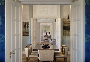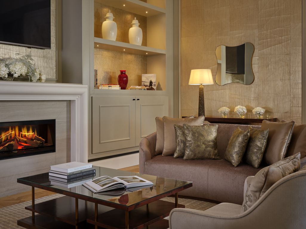 Kunstvolle Akzente setzen der Kamin aus Rotem Marmor im Frühstücksraum der King Suite, mit Blattgold veredelte Modezeichnungen des französischen Ateliers Hector, die auf den ehemaligen Namen des Gebäudes – „das Palais der Mode“ – anspielen, sowie eine Vielzahl von Gemälden und Fotografien renommierter Künstler.