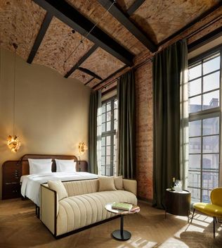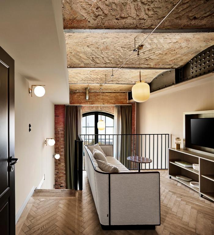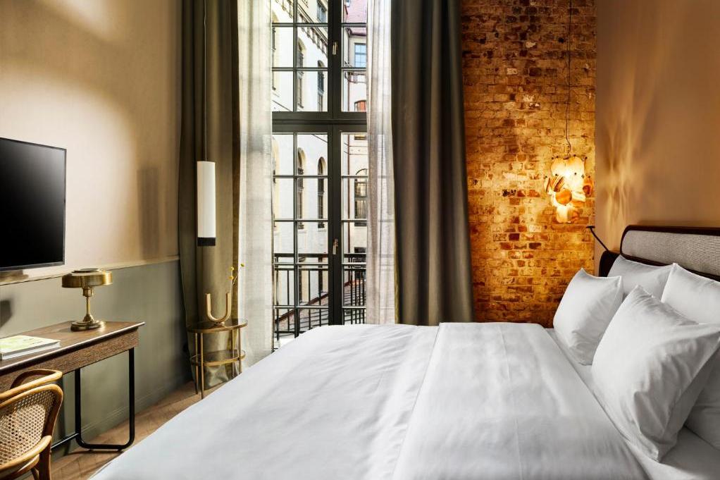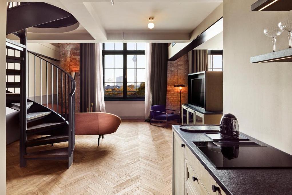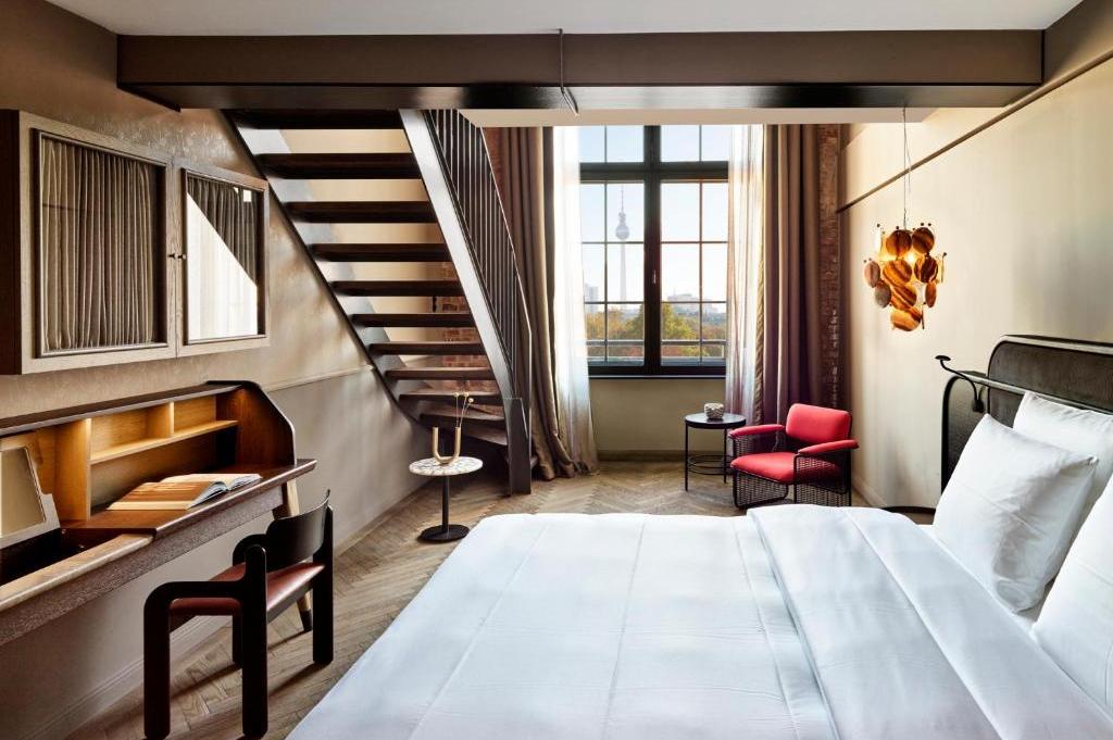 Das Hotel verfügt über 97 Zimmer und Maisonetten (zwischen 21 und 140 Quadratmetern). Die Gestaltung der Innenräume ist beeinflusst vom Berlin der 1920er Jahre, der Geschichte des Hauses und dem aktuellen Lebensgefühl der Stadt. Die originalen Gebäudeelemente wie die historischen Säulen, Kappendecken in den Zimmern sowie die freigelegten Ziegelsteinwände wurden in das Design integriert.