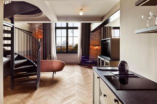 Den besonderen Blick auf Berlin gibt es aus den Zimmern zum Monbijoupark: mit Aussichten auf den Fernsehturm und das Rote Rathaus. Ein besonderes Wohnerlebnis bieten die sieben Maisonetten mit 4,30 Meter hohen Decken und bodentiefen Fenstern.