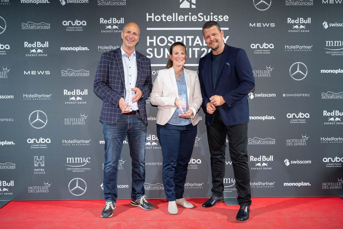 Mit Alexandra und Reto Invernizzi gewinnen passionierte Hoteliers einer Familiendynastie die Auszeichnung. Die stetigen Innovationen, welche den Betrieb in der Emmentaler Idylle einzigartig machen, kommen nicht von ungefähr. Die Gewinner beweisen, dass man auch „am Ende der Welt“, abseits der großen Touristenströme, ein innovatives, klar positioniertes Drei-Sterne-Hotel mit großem Erfolg betreiben kann. Bewundernswert, wie die Hoteliers es schaffen, regionale Produzenten und Partner für ihr Hotel und ihre Ideen zu gewinnen. Ihr Iglu-Dorf im Winter, die aufwändig gestalteten Spezialzimmer oder der Merängge-Kult sind Beispiele, welche die Innovationskraft der Hoteliers eindrücklich belegen. Last but not least gilt es auch das besondere Engagement der Hoteliers im Bereich der Berufsbildung zu unterstreichen.