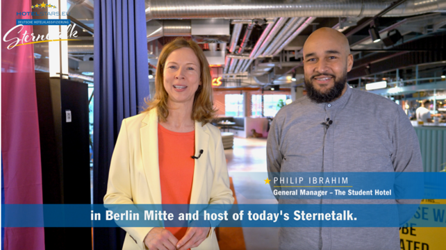 Als neuestes Marketinginstrument wurde der der von der Deutschen Hotelklassifizierung entwickelte „Sternetalk“ am Beispiel des aktuellen, vierten Interviews der Serie mit Philipp Ibrahim, General Manager des The Student Hotel in Berlin vorgestellt. „Durch die Internationalisierung mit beispielsweise englischen Untertiteln steht die innovative Interviewreihe aus Deutschland künftig allen Mitgliedsländern zur Verfügung“, berichtet der HSU-Präsident. Diese könnten auf ein eingespieltes Team und die Erfahrung aus bereits sieben gedrehten Sternetalk-Serien zurückgreifen und so im „Copy-and-Paste“-Verfahren eigene attraktive Imagefilme aus ihren Mitgliedsbetrieben einfach und effizient produzieren. „Mit unserem Sternetalk-Format wollen wir Hoteliers Lust auf die Hotelklassifizierung als zeitgemäßes attraktives Marketinginstrument machen und zeigen auf, dass die Hotelklassifizierung mit ihren stetig fortentwickelten Kriterien ausdrücklich auch offen ist für moderne Hotels mit ungewöhnlichen Konzepten“.