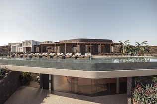 Die Architektur des Magma Resort Santorini orientiert sich an traditionellen Häusern der Kykladen und dem Ambiente der Insel. Die Außenfassade ist unter anderem aus Lavagestein erbaut. Alle 59 Gästezimmer und Suiten (darunter 46 mit privaten Pools und Jacuzzis) bieten Blicke auf die Ägäischen Inseln und die Insel Anafi.