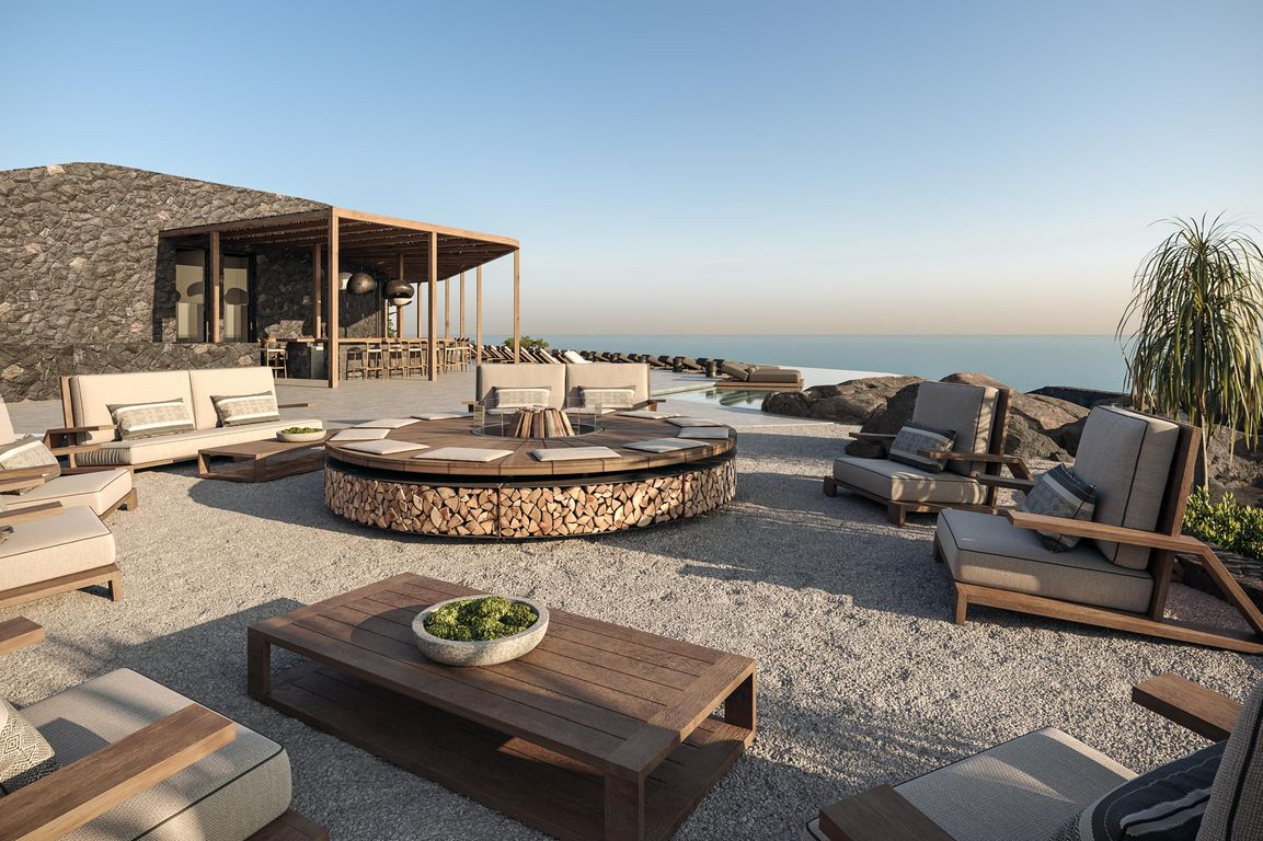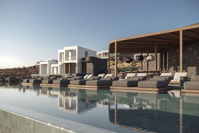 Eingebettet in Weinberge liegt das Resort an den aus Lavagestein bestehenden Hängen von Vourvoulos. In der Nähe befinden sich Lavasandstrände und Orte wie Fira und Oia, die für ihre „instagrammable“ Sonnenuntergänge bekannt sind. Das kulinarische Angebot in Form des Restaurants Magma by Spondi wird von einem mit zwei Michelin-Sternen ausgezeichneten Koch geführt. Hier werden Produkte aus der lokalen Landwirtschaft und saisonale Zutaten für die Kreation der Menüs herangezogen.