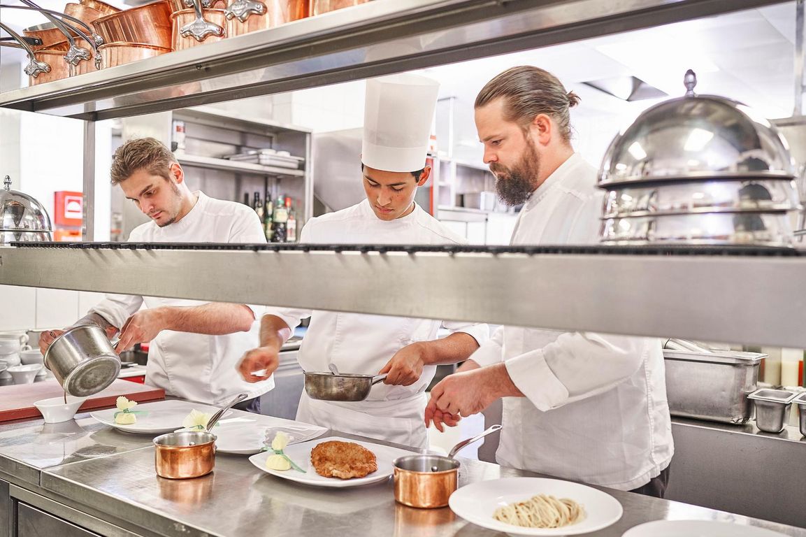Das À-la-carte-Restaurant des Hauses wird vom aktuellen Gault&Millau mit 14,5 Punkten und zwei Hauben bewertet. Noch besser schneidet der „Interalpen Chef’s Table“ ab: 17 Punkte und vier Hauben lautet das Urteil der Gourmetkritiker. Die Gäste sitzen hier nicht im Restaurant, sondern an einem speziellen Tisch direkt in der Küche. „Der Chef’s Table ist mein Baby“, so der gebürtige Deutsche. „Hier haben mein Team und ich die Möglichkeit, uns auszuprobieren und zu experimentieren.“ Der Chef de Cuisine ermutigt seine Mitarbeiter nachdrücklich, Ideen und Vorschläge einzubringen und selbst kreativ zu werden.