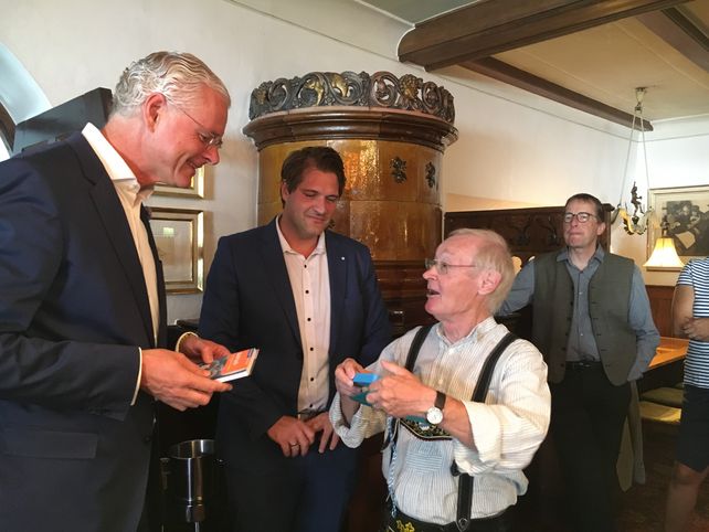 In seiner Begrüßungsrede nahm er den Einheimischen auch die Bedenken: „Wir werden kein Luxus-und auch kein Wellness-Hotel. Aber wir sind ein gehobenes 4-Sterne-Hotel mit einem gehobenen alpenländischen Restaurant und einer exzellenten Wirtshausküche“, versprach der 56-Jährige. Jost Deitmar will das Haus zum gesellschaftlichen Mittelpunkt der oberbayerischen Stadt machen. „Die Aiblinger sollen wieder stolz auf dieses Juwel sein.“ Damit er sich noch schneller in seine neue Wirkungsstätte einlebt, schenkte ihm 2. Bürgermeister Erwin Kühnel einen Sprachführer „Baierisch“ und eine Jodelmaschine.