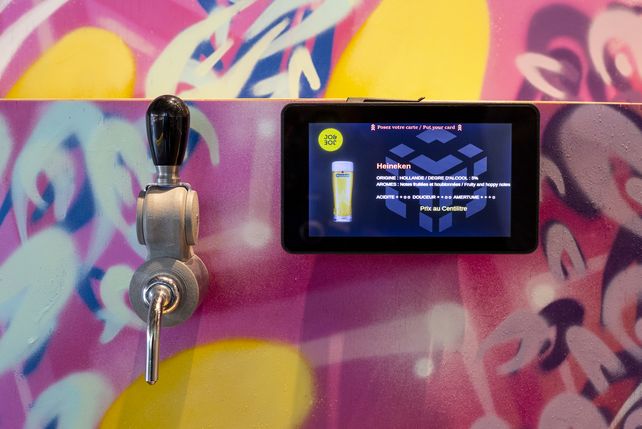 Die Barkeeper heißen Gäste jederzeit mit einem Kaffee oder bunten Cocktail willkommen. Und es gibt eine Bierwand, an der sich Gäste mit einer Prepaid-Karte selbst bedienen können.