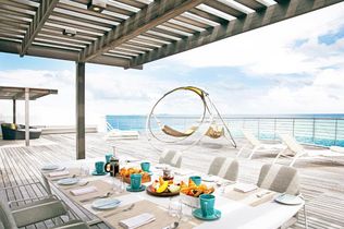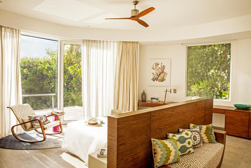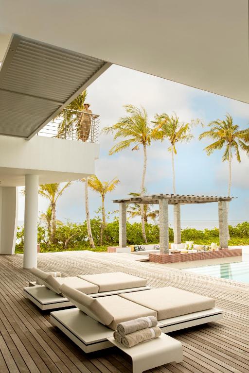 Jumeirah Maldives bietet 67 Strand- und Überwasservillen mit einem, zwei oder drei Schlafzimmern, die alle einen Panoramablick auf den Indischen Ozean bieten. Jede Villa verfügt über einen privaten Infinity-Pool und eine große Dachterrasse mit eigenem Essbereich, auf der die Gäste die Aussicht genießen können, während sie sich köstliche Gerichte schmecken lassen oder bei einem Film unterm Sternenhimmel entspannen.