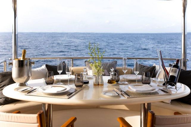 Und so bringt die Crew Gäste zu abgelegenen weißen Stränden und versteckten Orten rund um die Atolle. Die Badeplattform der Superyacht ermöglicht einen bequemen Ein- und Ausstieg für Wassersport, Tauchen oder Schnorcheln. Für mehr adrenalingeladenen Spaß, stehen Jet-Tender oder Jet-Ski zur Verfügung. Wer es entspannter mag, angelt das Abendessen selbst.