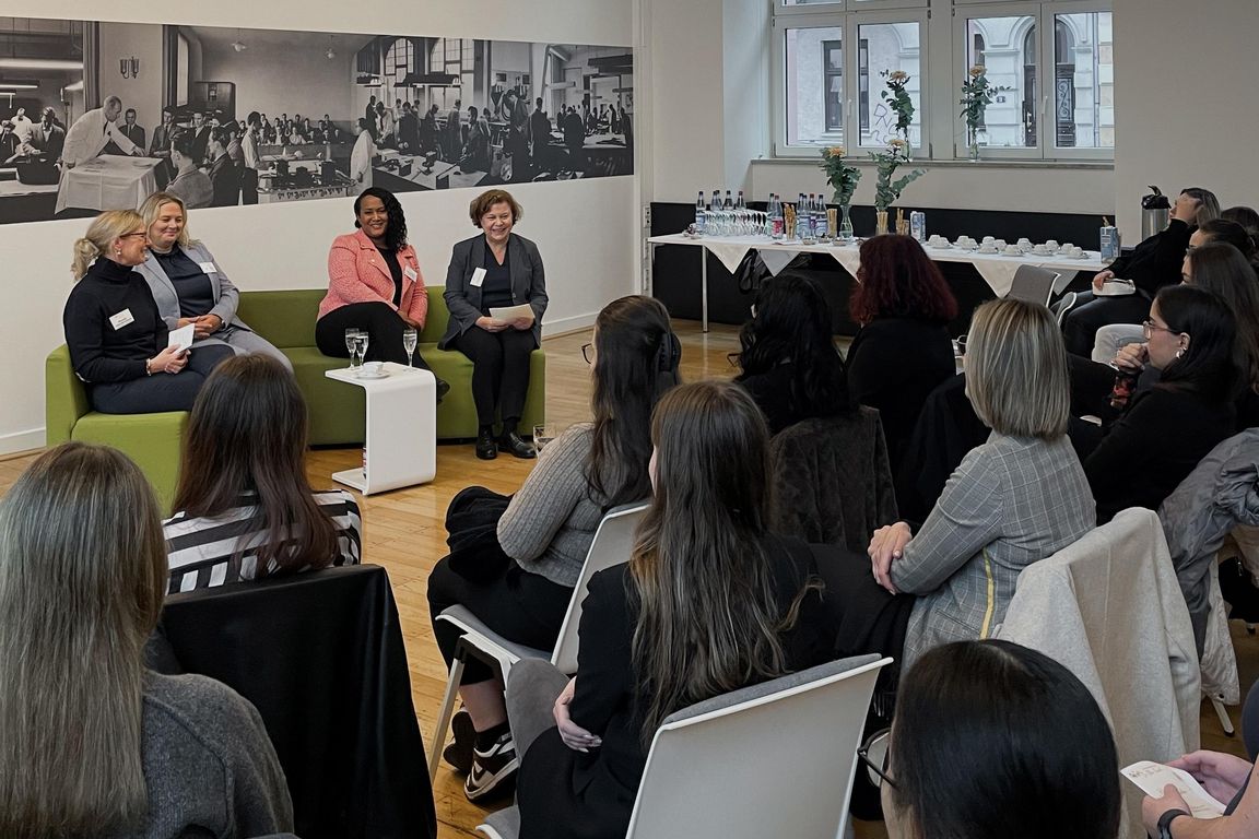 Die beiden Führungspersönlichkeiten gaben den Teilnehmerinnen wertvolle Einblicke in ihre Karrierewege und schilderten persönliche Herausforderungen. Diskutiert wurden Themen wie entscheidende Karriereschritte, die Vereinbarkeit von Karriere und Familie, die Bedeutung von Netzwerken, Auslandserfahrungen, Altersvorsorge, Weiterbildung und Durchsetzungsvermögen – insbesondere in einer nach wie vor männerdominierten Branche.