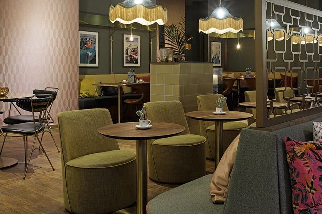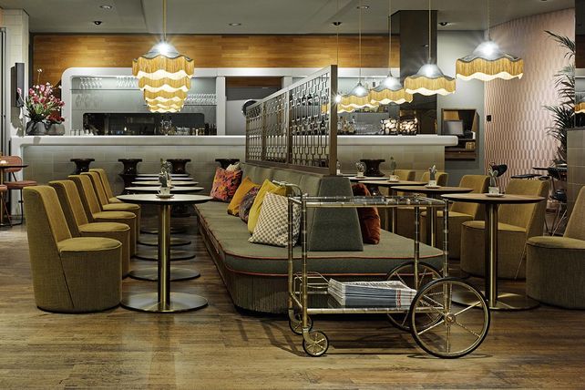 Herzstück des Hotels ist das Restaurant speisebar – und zwar nicht nur in kulinarischer Hinsicht. Die speisebar im neu inszenierten Mid-Century Look ist Café, Bistro, Bar und Treffpunkt für klassische Drinks und Speisen wie die hausgemachte Number One Currywurst. Das Design setzt auf warme, erdige Töne mit Goldakzenten, schwungvolle Formen und elegante Vintage Möbelstücke aus hochwertigem Leder.