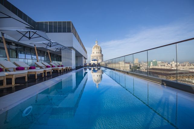 Der Dach-Pool, in dem sich das Spiegelbild der goldenen Kuppel des Capitolio bewundern lässt und von wo aus man einen Blick über die Stadt geniesst, wird mit Sicherheit zur Attraktion in Havanna werden. Neben einem Fitnessraum mit modernen Geräten für das Training auf Reisen gibt es einen professionellen Haarsalon mit Nagelstudio für Damen und Herren.