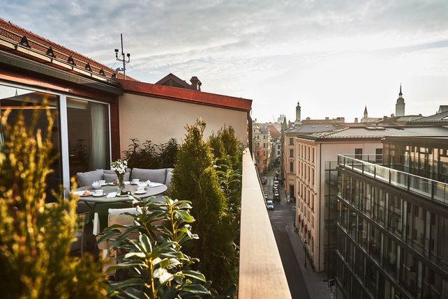 Besonderes Element ist eine Terrasse, die Gäste von einem der höchstgelegenen Orte in der Münchner Altstadt den Ausblick auf sieben Münchner Prachtbauten bietet.