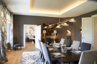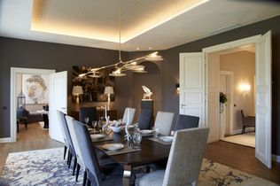 Die Royal Residence am Schloss Nymphenburg liegt am Schnittpunkt von Stadt und Land und ist ein exklusives Domizil in München. Auf drei Etagen mit insgesamt 836 Quadratmetern verteilt, verfügt die Royal Residence über vier Schlafzimmer, sieben Bäder, drei Wohnzimmer, Esszimmer, Küche, Fitnessraum, Tagungsraum, Heimkino und Weinkeller. Im Außenbereich umfasst die Royal Residence einen privaten Garten mit einer Majolika-Terrasse, die bis zu 100 Gäste empfängt.
