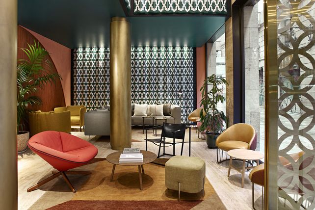 Der Creative Director und SVP of Design von Kimpton, Ave Bradley, hat mit dem ortsansässigen Studio für Innendesign El Equipo Creativo zusammengearbeitet, um den Stil Barcelonas im Hotel einfließen zu lassen. Das Design verbindet Terrakottafarben, die für das Stadtbild Barcelonas stehen, mit Blautönen. Eine der zentralen Farben, die in den Zimmern und im Restaurant Fauna verwendet wird, ist die Pantone-Farbe des Jahres 2020, "Classic Blue".