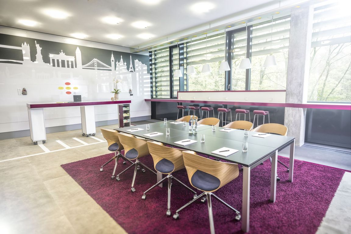 Exklusiv und abgeschlossen von den anderen Teilen des Konferenzhotels herrscht im „Think Terminal“ Airport-Atmosphäre: Typische Elemente eines Flughafens wie eine Flug-Anzeigetafel, ein imposanter Tower und Equipment-Klassiker wie Boardtrolleys und Lounge-Sessel schaffen ein inspirierendes Tagungsumfeld.