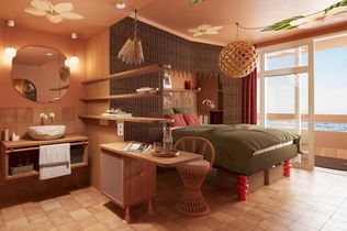 Hinter den gestalteten Gärten, die die Gebäude umgeben, verbergen sich Loungebereiche, ein Outdoor-Pool, die Dining-Terrasse des neuesten NENI-Restaurants der bekannten Wiener Köchin Haya Molcho und die GIN SUL-Outdoor-Bar, die erste Bar auf Mallorca mit den Spezialitäten der Hamburger Spirituosen-Manufaktur Gin Sul. Ob mit mediterranem Soul Food oder gepflegten Drinks – beide Locations bieten den Gästen eine atemberaubende Aussicht auf den Sonnenuntergang. Auf dem gesamten Gelände verteilen sich 130 Zimmer, darunter zwei Penthouses mit Panoramaaussicht und großzügigen Terrassen.