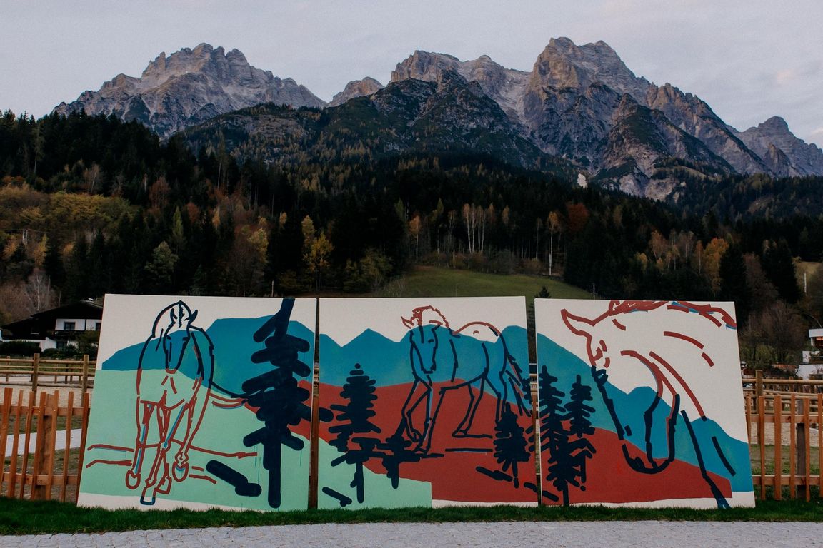 „Unser Workation Room ist mehr als nur ein Arbeitsplatz. Er ist ein Ort, der zum Nachdenken anregt und in dem unsere Gäste gute Gespräche führen können – all das in einem künstlerischen, inspirierenden Ambiente“, so Gastgeber Christoph Schmuck. Seit kurzem werden daher Werke verschiedener Künstler ausgestellt – jedoch nicht nur im Workation Room des Hotels, sondern auch die umliegende Natur lädt mit der Installation von Außenskulpturen zu einer Auseinandersetzung mit zeitgenössischer Kunst ein. In Zukunft sind zudem kulturelle Events in Planung, wie beispielsweise ein "Artist Talk" mit Erwin Wurm am 14. Januar.