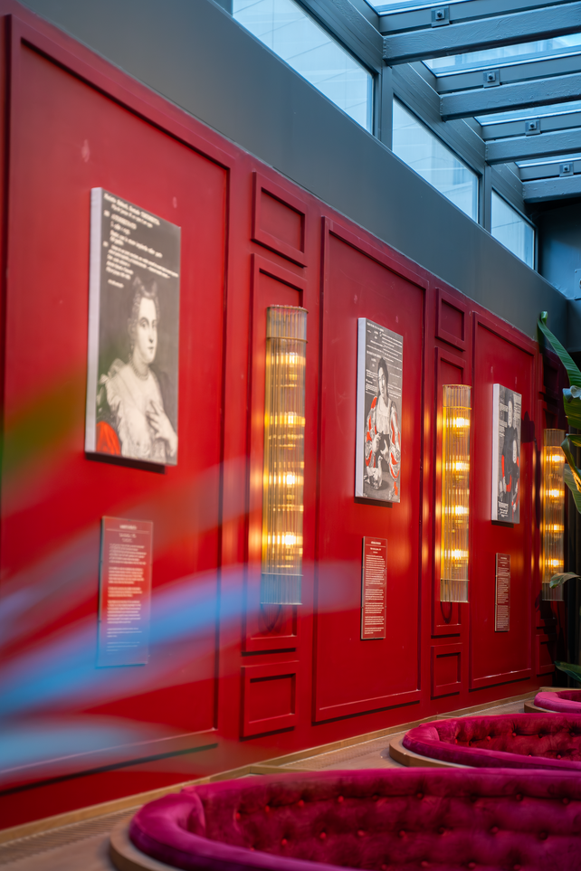 In Zusammenarbeit mit der Galerie Espacio Mínimo zeigt Diana Larrea vier ihrer neun Gemälde, die mit Hilfe der Infrarot-Reflektographie entstanden sind. Inspiriert von der Welt der Kunstrestauration, nutzen diese Kunstwerke Infrarotlicht, um verborgene Informationen unter den undurchsichtigen Pigmentschichten zu enthüllen. Larrea hat die Gemälde mit schwarzer Kohle auf Leinwand nachgezeichnet, um auf die Reflektogramme hinzuweisen, die mit dieser einzigartigen Technik gewonnen wurden. An einer anderen Wand im Eingangsbereich des Hotels finden die Gäste sieben Fotografien von Larrea mit dem Titel „Such a Day Like Today“. Bei diesen Fotos handelt es sich um eine Mischung aus feministischem Aktivismus und historischer Recherche, einschließlich in sozialen Netzwerken veröffentlichter Details, sowie Biografien und Werke vergessener oder unbekannter Künstlerinnen der Vergangenheit. Als Hommage an sie hat Larrea Selbstporträts großer Malerinnen ausgewählt und sie digital verändert.