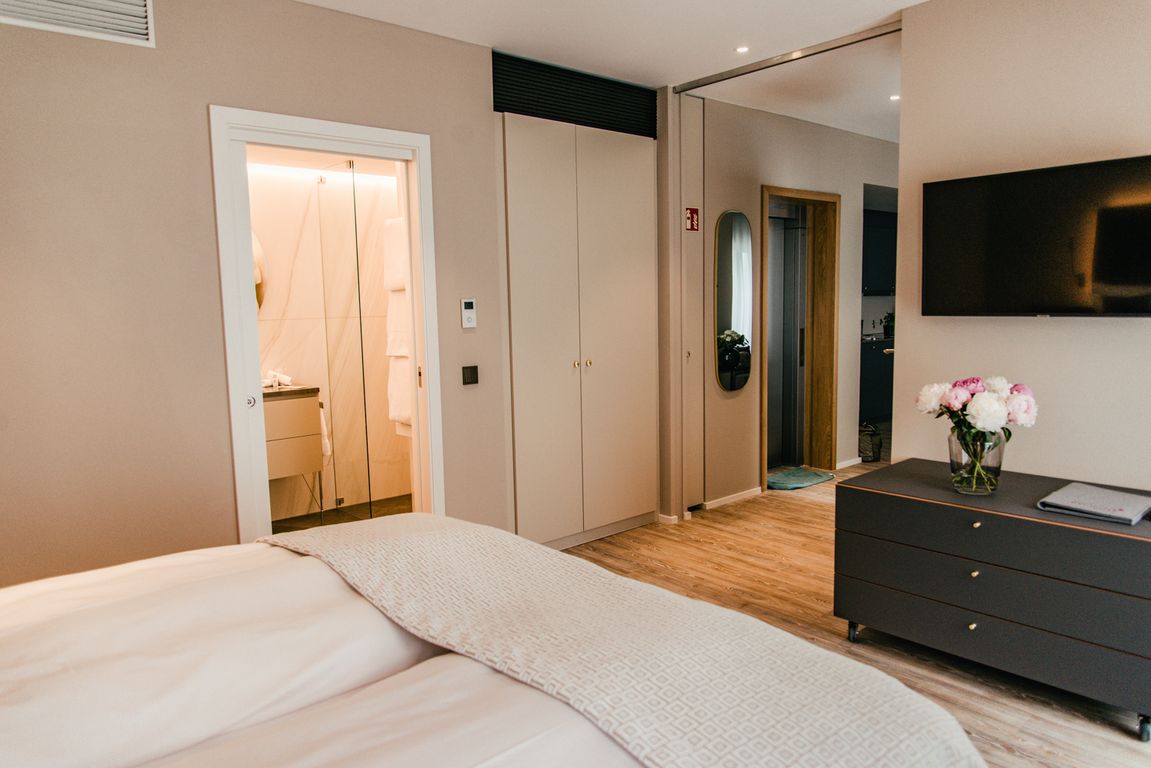Ein Großteil der Unterkünfte ist mit einer eigenen Küche ausgestattet - die meisten bieten zudem einen Balkon. Exklusive Materialien, wie handbemalte Kacheln aus dem Schwarzwald und heimeliges Lärchenholz schaffen eine einzigartig-gemütliche Wohlfühlatmosphäre. Auf Wunsch wird sogar der Einkauf übernommen, damit ein gut gefüllter Kühlschrank nur darauf wartet, geplündert zu werden. Gäste sollen sich mit der Ankunft im Hotel rundum wohl, so die Philosophie des in dem kürzlich viele der Zimmer, Apartments und Suiten aufwendig und nachhaltig renoviert wurden.