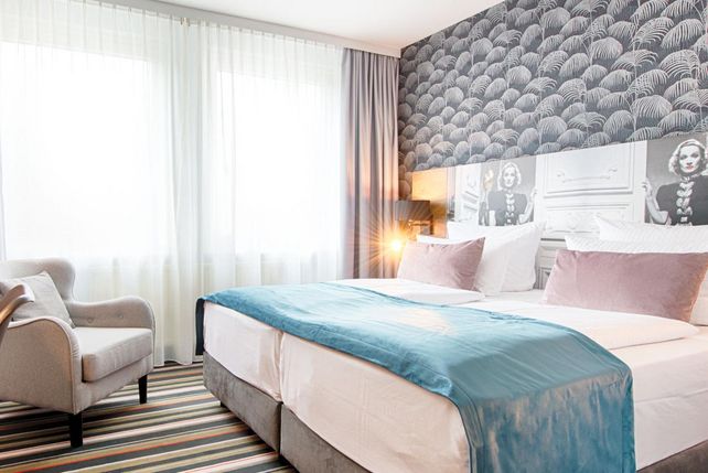 Die 84 Zimmer präsentieren sich in einem rundum neuen Look: frische Farben, stilvolle Bildelemente mit regionalem Bezug, verbunden mit gemütlichem Ambiente. Hauptstadt-Flair spiegeln auch alle weiteren Bereiche des Hotels: die moderne Open-Lobby-Bar mit Glaspyramide und Lounge-Bereich, das Frühstücksrestaurant sowie die beiden Tagungsräume für jeweils bis zu 50 Personen.