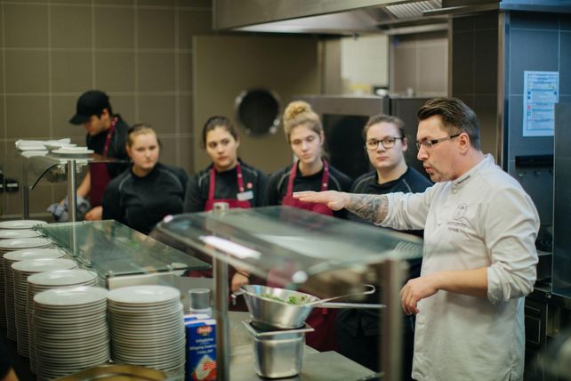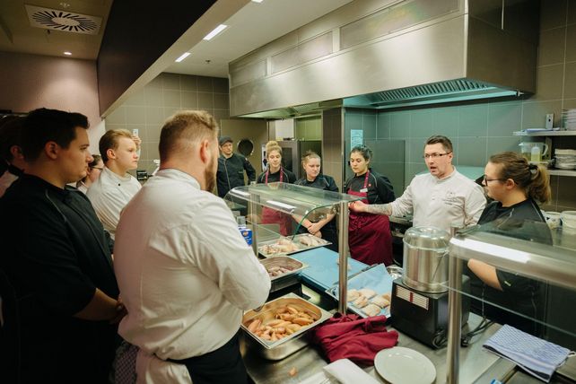 Die Studierenden erlernen neben dem Kochhandwerk auch ökonomisches Fachwissen in Bereichen wie Kalkulation, Food & Beverage Management oder Sales & Marketing. „Ich finde es super hilfreich, schon während des Studiums Praxiserfahrung zu sammeln. So versteht man auch viel besser, was man in der Hochschule vermittelt bekommt“, erklärt Lukas Rumler, der seine Praxisphasen im Leonardo Royal Munich macht.