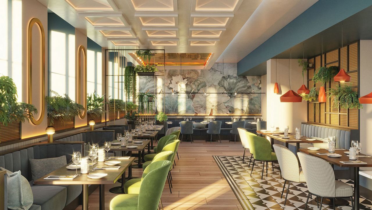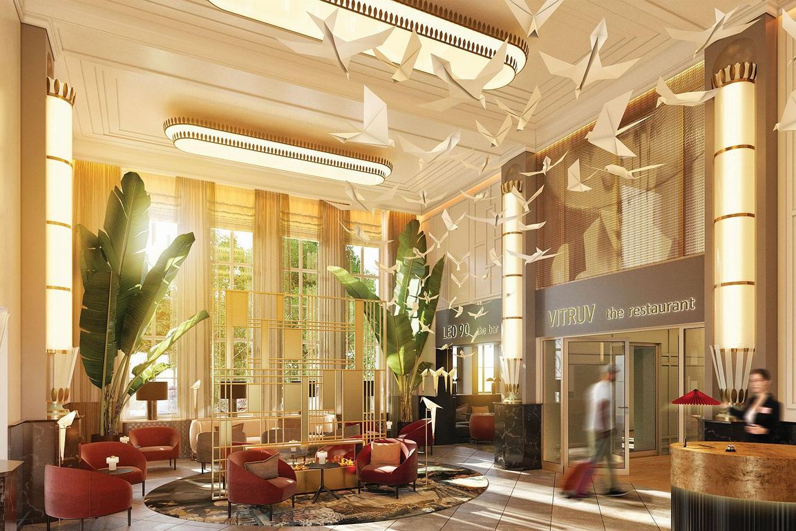Ein Kontrast dazu ist das Restaurant Vitruv, wo die Farbgebung frischer gewählt wurde – aufgepeppt mit noch mehr Pflanzen, Banknischen mit kleinen Leuchten und einer großen blumigen Bildtapete sowie Teppichen in Ornamenten. Mitten in der City soll man sich hier wie in eine andere Ära versetzt fühlen. Der Konferenz- und Bankettbereich erhält ebenso einen neuen Look in Wasser- und Silberfarben, mit LED-Deckenleisten sowie Wandpaneelen mit Wandleuchten und vermittelt auch hier ein Gefühl von Weite.
