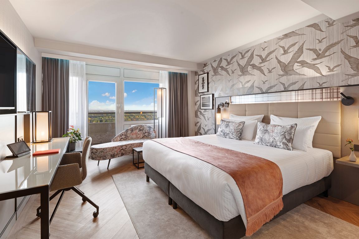 Das Leonardo Royal Frankfurt feiert im Dezember 2024 nach zwölf Monaten Renovierung seine Wiedereröffnung. 280 der 449 Zimmer wurden vollständig renoviert und zeigen sich nun in Nude- und Erdtönen. Edle, geradlinige Möbel, Fußboden in Holzoptik und neue Bäder sollen einen komfortablen Aufenthalt garantieren. Was bleibt, ist die Aussicht – nach wie vor bietet jedes der Zimmer einen eigenen Balkon mit Panoramablick auf die Frankfurter Skyline oder den Stadtwald.