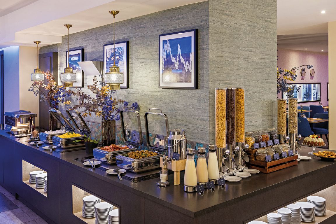 Der Meetingbereich des Hauses, der sich über drei Etagen erstreckt, wurde aufgefrischt und mit moderner Technik ausgestattet. Auch hier haben alle 15 Meetingräume Tageslicht, einige verfügen über einen eigenen Balkon. Das sprichwörtliche Highlight des Veranstaltungsbereiches ist der Tower Room im obersten Stock: Aus über 100 Metern Höhe eröffnet sich der Blick über ganz Frankfurt.