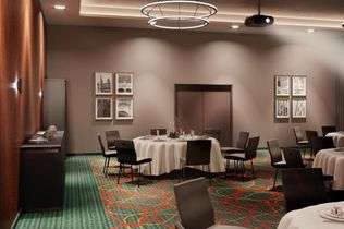 Das Lobby-Designkonzept trägt die Handschrift von Andreas Neudahm. Der Designer ließ sich zum einen von der historischen Fassade des „Tafelhof Palais“-Ensembles inspirieren und brachte die Stilelemente der Goldenen Zwanziger ins Haus. Dazu gehören abstrakte und geometrische Muster auf Tapeten und Textilien, aerodynamische Formen sowie metallische Farben – kombiniert mit hochwertigen Materialien, warmen Erdtönen und Stoffen aus Samt.