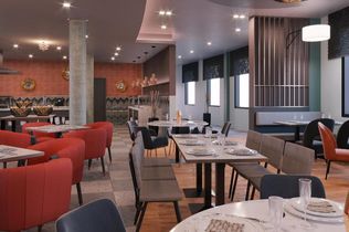Das Restaurant mit 170 Sitzplätzen bietet levantinische Küche, die vom neuen Küchenchef Matthias Cantauw und seinem Team zubereitet wird. Dabei mixt der gebürtige Düsseldorfer verschiedene Mezze wie Hummus oder Avocado Tabouleh mit Hauptgängen wie ganzer gebackener Blumenkohl sowie Desserts wie Joghurt mit Walnüssen.