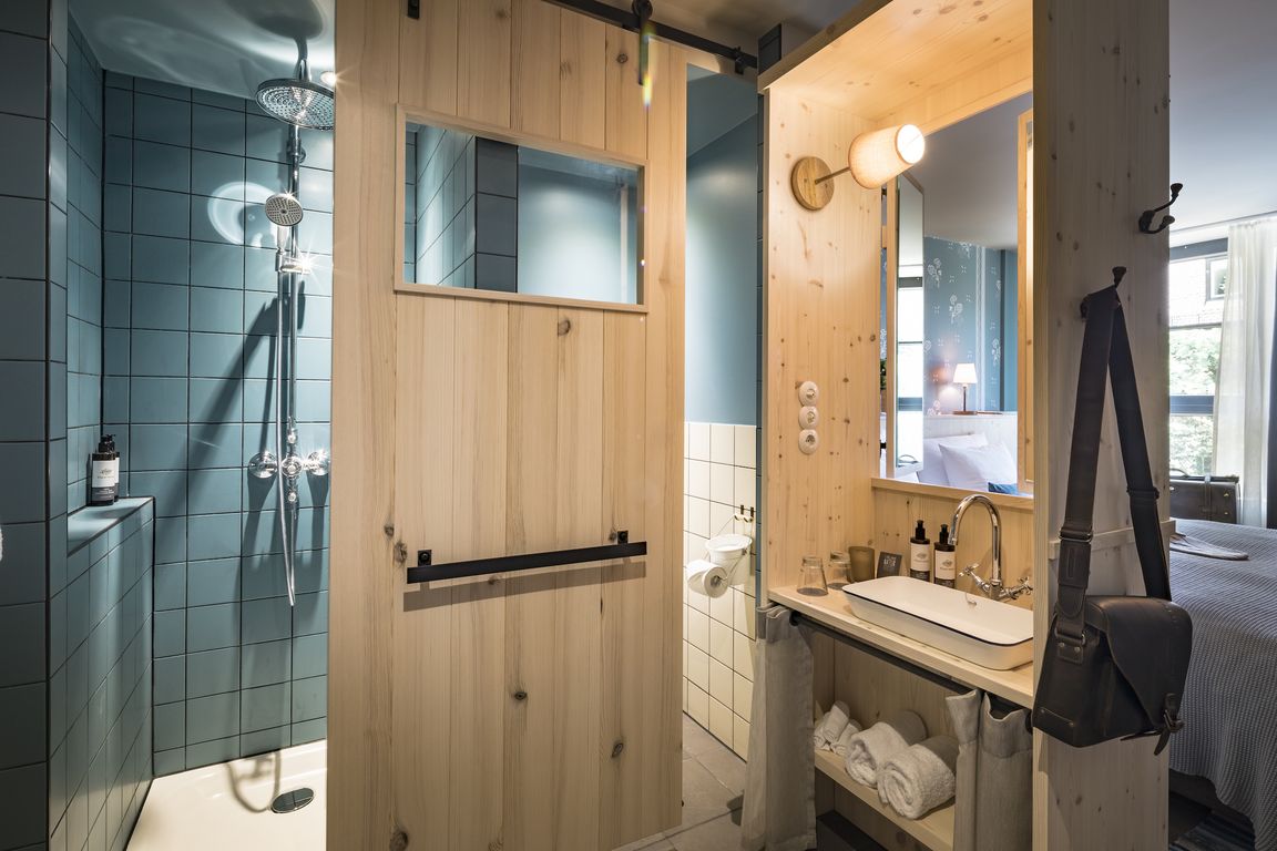 Viel Holz, Textilien, Emaille, Leder, Liebe zum Detail und ein „zartes Bleu“ an den Wänden dominieren das Ambiente. „Das konzeptionelle Motto unseres Hotels und seiner Zimmer lautet Heimatgefühl“, erklärt Operations Manager Christopher Becker-Vogt. „Die Umsetzung dieser Idee und Vorgabe ist unserem Innenarchitekten, der Firma DREIMETA – Atelier für Gestaltung in Augsburg, auf vorbildliche Weise gelungen.“
