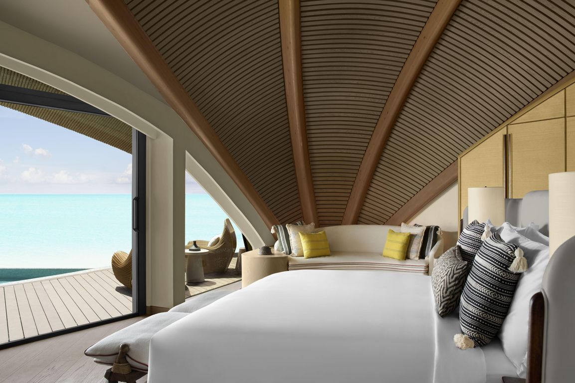 Erreichbar ist das Resort per Bootscharter oder Wasserflugzeug. Nujuma umfasst 63 Overwater- und Strandvillen mit bis zu drei Schlafzimmern, geräumigen Wohnbereichen und Privatpools mit Meerblick. Damit Gäste den weiten Sternenhimmel von ihrer Villa aus bestaunen können, steht auf jedem Deck ein Teleskop. Die über dem Meer thronenden und durch einen erhöhten, ringförmigen Steg verbundenen Villen bieten Panoramablicke und direkten Zugang zum Meer. Jede Villa wird von einem persönlichen Gastgeber betreut.