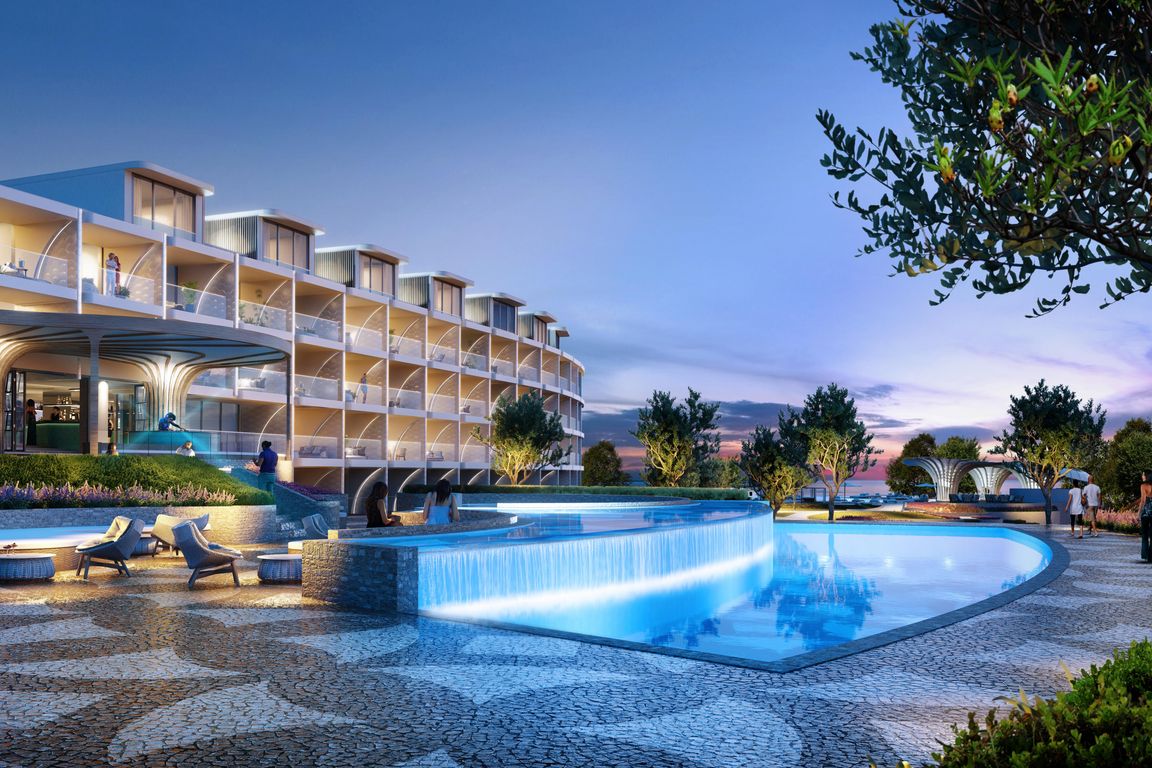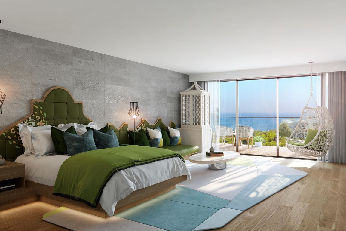 Die Residenzen umfassen Apartments mit einem, zwei, drei oder vier Schlafzimmern, deren Innendesign und Mobiliar den Formen und Farben von Strandkieseln und lokalen Meereshöhlen nachempfunden ist.