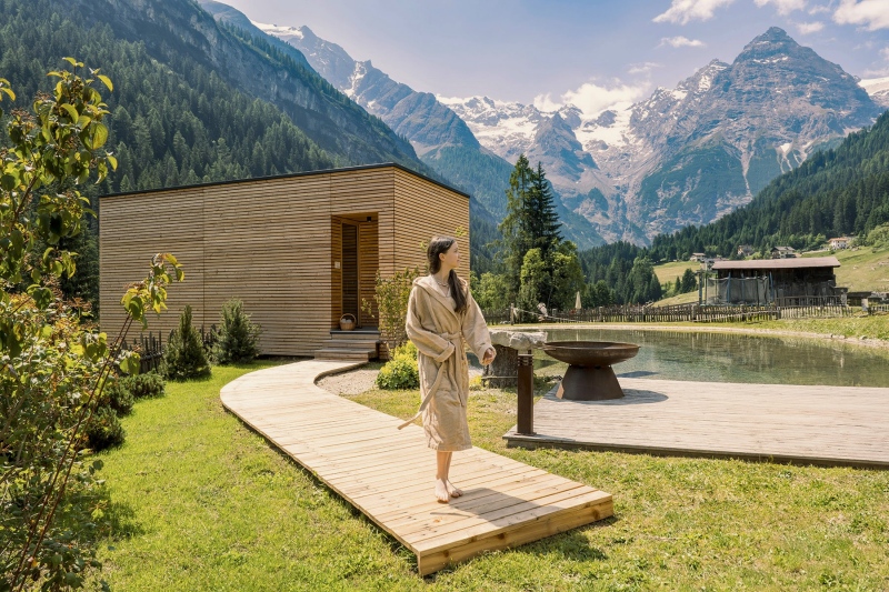 Kern des Umbaus ist ein neuer Anbau, der laut Mitteilung als „Nest“ bezeichnet wird. Der Gebäudeteil umfasst 24 Suiten und wurde mit einer hölzernen Außenstruktur umgesetzt. Nach Angaben des Unternehmens verbindet sich der Neubau mit dem bestehenden Hotel aus dem Jahr 1875. Das Haus liegt auf über 1.500 Metern Höhe im Bereich des Nationalparks Stilfserjoch.
