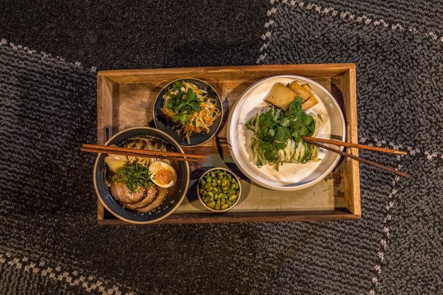 Stundenlang köchelnde Brühe, feine Nudeln aus speziellem Mehl und frische Zutaten wie geröstete Tomaten, Frühlingszwiebeln, Pak Choi, Tofu, Ingwer, Shitake oder Ei – der Vielfalt ist beim japanischen Nationalgericht Ramen keine Grenze gesetzt. Im me and all hotel mainz haben die Gäste nun die Wahl zwischen einer Hühner-Schweine-Brühe oder einer veganen Gemüse-Pilz-Brühe als Basis. Diese kann jeweils mit bis zu neun Toppings individuell angepasst werden. Zudem stehen Fleischsorten wie Teriyaki Entrecôte oder Wagyu Beef shabu shabu style zur Wahl.