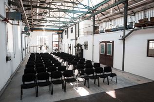 Das Alte Auktionshaus liegt auf dem historischen Areal der Waggonfabrik im Mainzer Stadtteil Gonsenberg: Die ehemalige Sägerei auf 336 Quadratmeter bietet ein unverwechselbares Raumgefühl, das durch Klarglas-Lichtbänder im Giebel geschaffen wird.