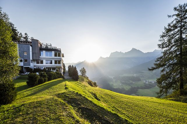 Das Hotel „Paradies“ im Engadin (Ftan) liegt auf einem der schönsten Sonnenplateaus der Schweizer Alpen – rund 2,5 Fahrstunden von Zürich, Innsbruck und vier Stunden von München. Das Haus im Bauhausstil mit 23 Zimmern und viel Charme trug stets seinen Namen „II Paradis“. 1910 baute der Kunstmaler Hans Walter Beyer Wohnhaus und Atelier aus. In der damaligen Wohnstube bewirtete seine Gattin die ersten Gäste. Nach mehreren Besitzerwechseln und der Erweiterung zum Hotel in den Jahren 1966 und 1967 erwarb die Hamburger Hoteliersfamilie Rahe das Anwesen 1995. Nach Investitionen von mehreren Millionen Franken haben die Eigentümer das Hotel in einigen Umbauphasen zu neuem Leben erweckt. Das „Paradies“ ist ein Geheimtipp für alle, die ein kleines, feines Hideaway in den Bergen suchen. Hier findet man die Auszeit vom Alltag mit allem was das Herz erfüllt: liebevolles Wohndesign, ausgezeichnete Küche, persönliche Gastfreundschaft, würzige Bergluft und jede Menge Entspannung. Die Chasa da Fö – wörtlich das Haus mit dem Herd – ist ebenfalls im Besitz des Hotel Paradies und liegt auf über 2200 Metern über Meer auf der Alp Laret. Die Hütte beherbergt wohl die höchste Kochschule Europas.