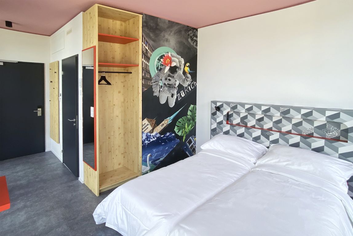 In dem vom Zürcher Architekturbüro Gigon/Guyer entworfenen Hotelneubau befinden sich auf sechs Etagen 174 Zimmer mit insgesamt 582 Betten. Beim Interior Design stand der Kunststil des Dadaismus Pate. Mit ungewöhnlichen Möbeln, Dekorationen und Designelementen wird hier auf die Kunstrichtung des frühen 20. Jahrhunderts angespielt, die ungehemmte Fantasie fördern und Irrationalität ausdrücken soll.
