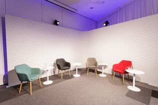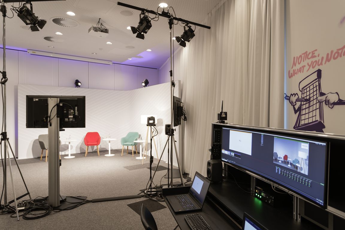 Die von der Billmann Event GmbH gestalteten Sets in den Tagungsbereichen können für separate Events genutzt werden, aber auch städteübergreifend gekoppelt werden. Sie verfügen unter anderem über eine zentrale, Branding-fähige Rückprojektionsfläche, ein Smart AV-Regiepult mit Videoproduktionsmischpult, zwei Laptops für Präsentationen und Zoom-Konferenzen, einen 40-Zoll-Vorschaumonitor für die Referenten, Videoplayer und Audiomischpult mit drahtlosen Mikrofonen, zwei Dome-Cams für programmierbare Kamerapositionen und ein Beleuchtungssystem.