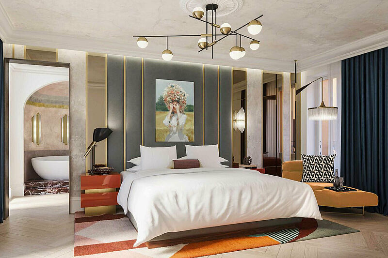 Will Meyer, Mitbegründer von Meyer Davis, sagt: „Normalerweise sehen wir Projekte als eine Subtraktionsübung, um die Essenz einer Immobilie zu finden und fokussieren uns auf Reduktion. Dieses Projekt erforderte eine andere Herangehensweise, um den maximalistischen Ansatz der W Hotels herauszuarbeiten. Wir ließen uns von der vielschichtigen Geschichte der Stadt inspirieren und bauten unser Storytelling aus der unglaublichen Collage aus Kulturen und Einflüssen auf – von der Antike bis zur Moderne – die Rom zu einem der begehrtesten Reiseziele der Welt machen. Diese Verschmelzung von zeitgeschichtlichen Epochen und visuellen Elementen schafft ein weiteres Spielfeld, das die Gäste entdecken können.“
