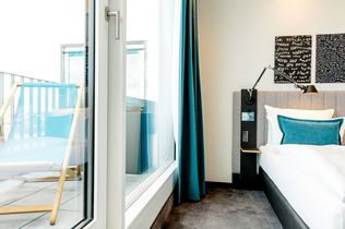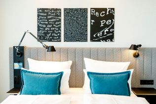 An der Rückseite im Erdgeschoss steht buchstäblich das Recht geschrieben. Eine Wandinstallation zeigt in unterschiedlicher Typografie bekannte Abkürzungen aus der Rechtssprache. Die top Lage inmitten der Stadt bietet eine Vielzahl an Erlebnissen und Sehenswürdigkeiten direkt vor der Tür und eignet sich bestens, um die Highlights der Stadt fußläufig zu erkunden. Vorbei am Bundesgerichtshof gelangen Gäste in kurzer Zeit durch die Fächerstraßen zum Schloss samt Schlossgarten, dem botanischen Garten oder zum Bundesverfassungsgericht. Ebenfalls in Laufdistanz befinden sich das Kongresszentrum, das Zentrum für Kunst und Medien sowie Stadtgarten und Zoo. Nachtschwärmer können direkt zum lebhaften Ludwigsplatz laufen.