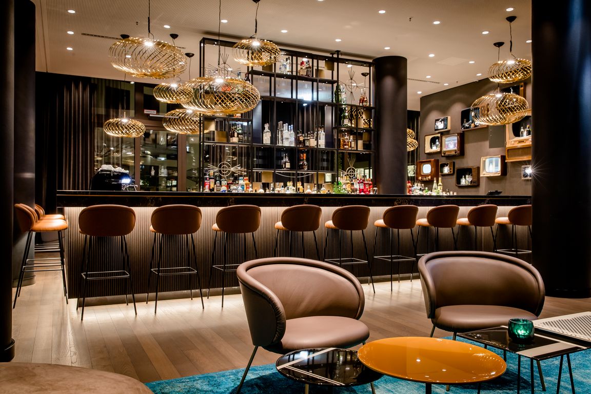 Besonderes Highlight des Hauses ist der direkte Blick auf den Kölner Dom. Dazu gibt es eine One Lounge, die einem modernen Coworking-Space mit Sofaecken und Hochtischen zum Arbeiten und einem fließenden Übergang zum Barbereich gleicht. Die Bar selbst erinnert mit einer Fernsehwand an die Zeiten, in denen das Farbfernsehen populär wurde. An der Rückwand der Bar sind aufgesetzte Rahmen aus historischen Röhrengeräten angebracht. In diesen sind neben Spirituosen auch Flatscreens zu finden, auf denen Testbilder aus der Frühzeit des Fernsehens in Dauerschleife flimmern. Historische Fernsehapparate an den Wänden präsentieren die Highlights der Getränkekarte, während auf einzelnen Geräten Bilder von TV-Klassikern, Quizsendungen und anderen Skurrilitäten der Fernsehgeschichte laufen.