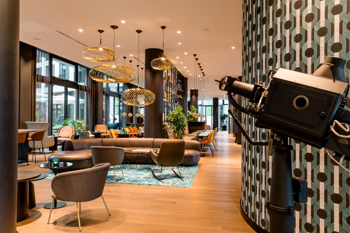 „Der charmante Mix aus Klassik und Moderne zieht sich als wiederkehrendes Motiv durch das gesamte Hotel – vom Möbeldesign, über die Farbgestaltung bis hin zu grafischen Mustern an Wand und Boden. Im Kontrast zu Vintage-Unikaten wie historischen TV-Geräten, Teppichen und Sideboards aus den Wirtschaftswunderjahren stehen vielfältig eingesetzte moderne Medien und aktuelle Designerstücke“, erläutert Ursula Schelle Müller, CMO Motel One, das Designkonzept.
