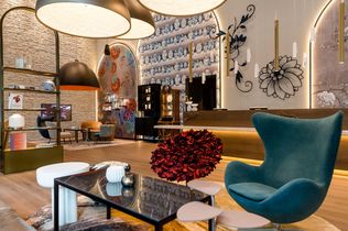 Die neu gestaltete One Lounge mit Arbeitsplätzen und der Bar lädt am Abend ein. Im angrenzenden Frühstücksbereich haucht die Leuchte "Heracleum" von Moooi florale Ästhetik ein. Der "Pig Table" von Moooi sowie die "Rabbit Lamp" ist zwischen "Tulip" und "Dalia Chairs" von Cappellini, designt von dem Niederländer Marcel Wanders, geschickt in Szene gesetzt. Auch bei der Outdoor-Lounge ist der Einfluss des berühmten Vergnügungsparks spürbar. Auf der Außenfläche findet man bunte Möbel, Sitzinseln und Springbrunnen.